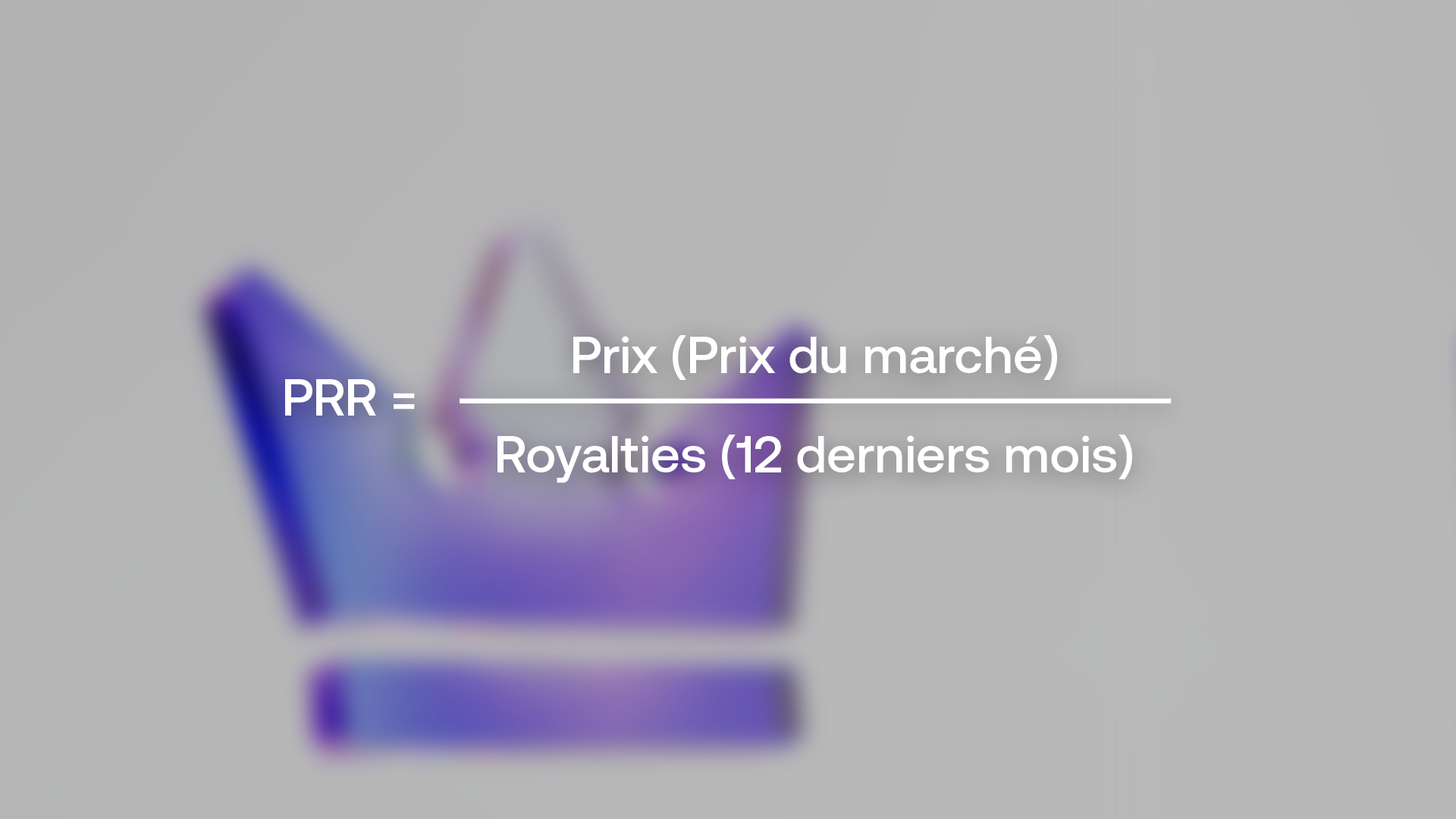 Formule simplifiée : PRR = Prix de marché / Royalties des 12 derniers mois
